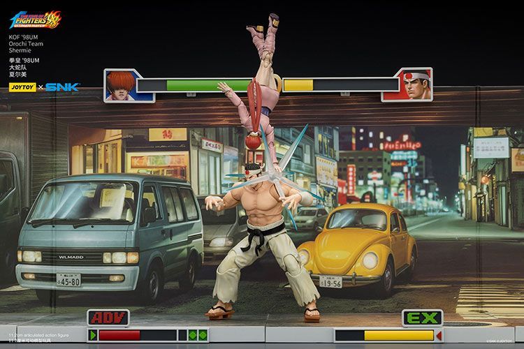 As figuras são produzidas na escala 1/18, com articulações e acabamentos fiéis aos personagens consagrados do jogo. Cada personagem será vendido separadamente, permitindo aos colecionadores escolher individualmente ou completar o trio original de KOF '98.