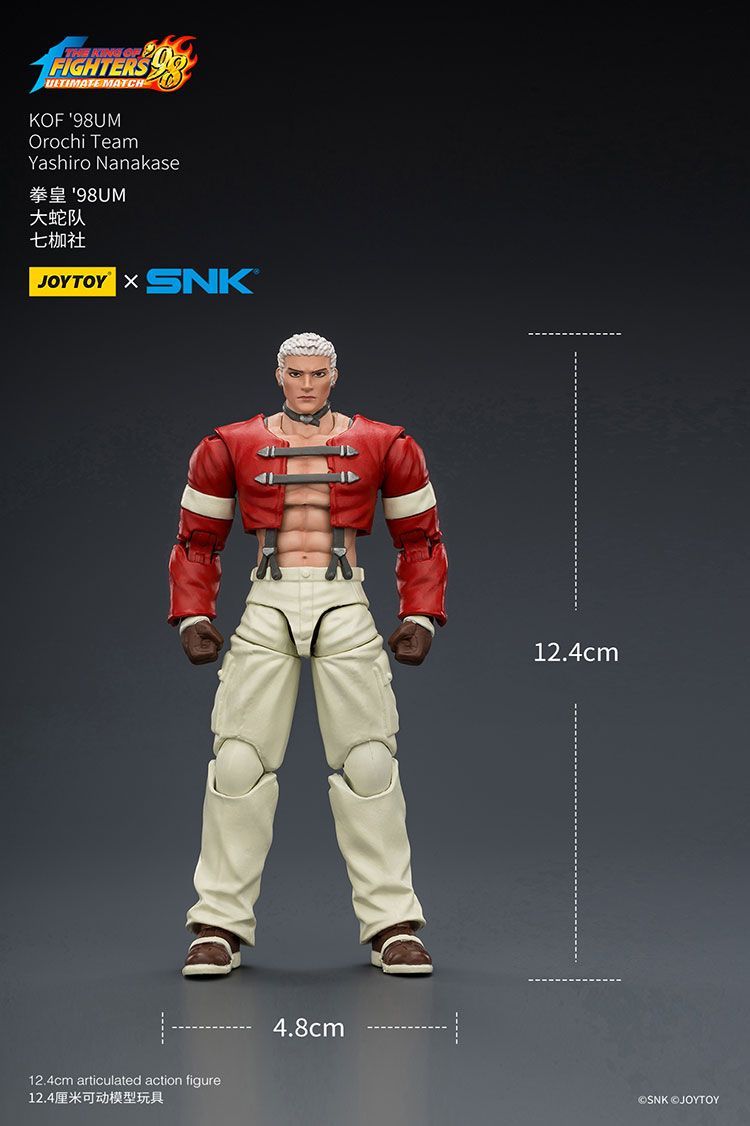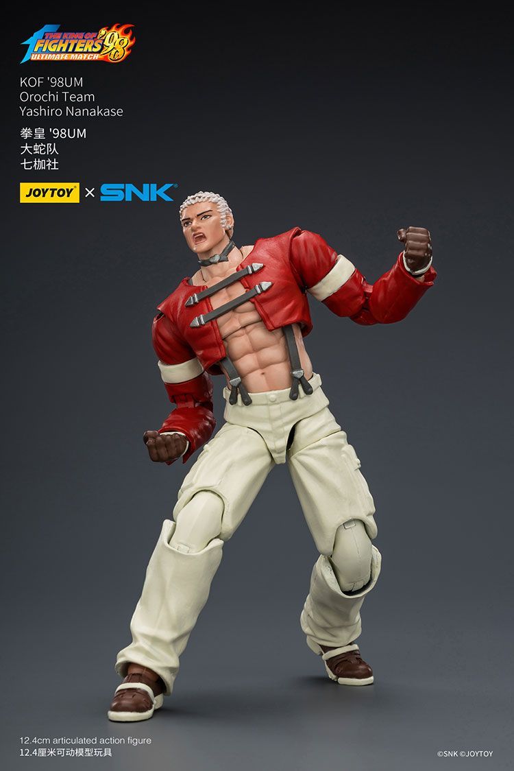 A Joy Toy, conhecida por sua atenção aos detalhes em figuras colecionáveis de ação, anunciou oficialmente uma nova linha dedicada a The King of Fighters '98 Ultimate Match, em parceria direta com a SNK. A primeira equipe revelada foi o clássico Team Japan, composto por Kyo Kusanagi, Benimaru Nikaido e Goro Daimon. Algumas semanas depois, chegou a vez de todo o Team Ikari, com Leona Heidern, Ralf Jones e Clark Still. Ainda em 2025, tivemos o Team KOF 97 Special, com Ryuji Yamazaki, Blue Mary e Billy Kane. O quarto tim anunciado foi o lendário Team Fatal Fury, com Terry Bogard, Andy Bogard e Joe Higashi. Agora é a vez do Team Orochi, com Yashiro Nanakase, Shermie e Chris,