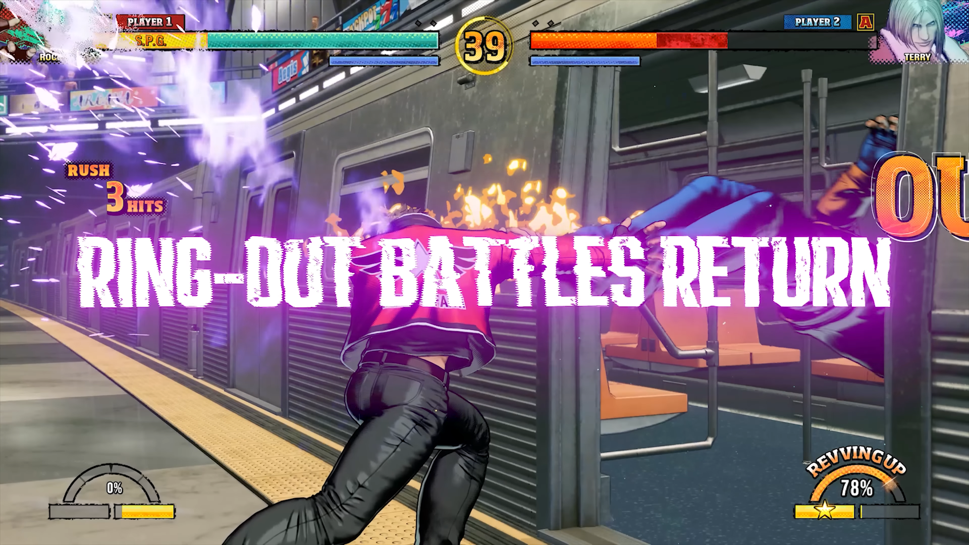O retorno do Out of Bounds: A adorada mecânica de Ring Out Battle de REAL BOUT FATAL FURY está de volta! Reviva a nostalgia em Second South Central, um novo cenário exclusivo para esse tipo de luta clássico!
