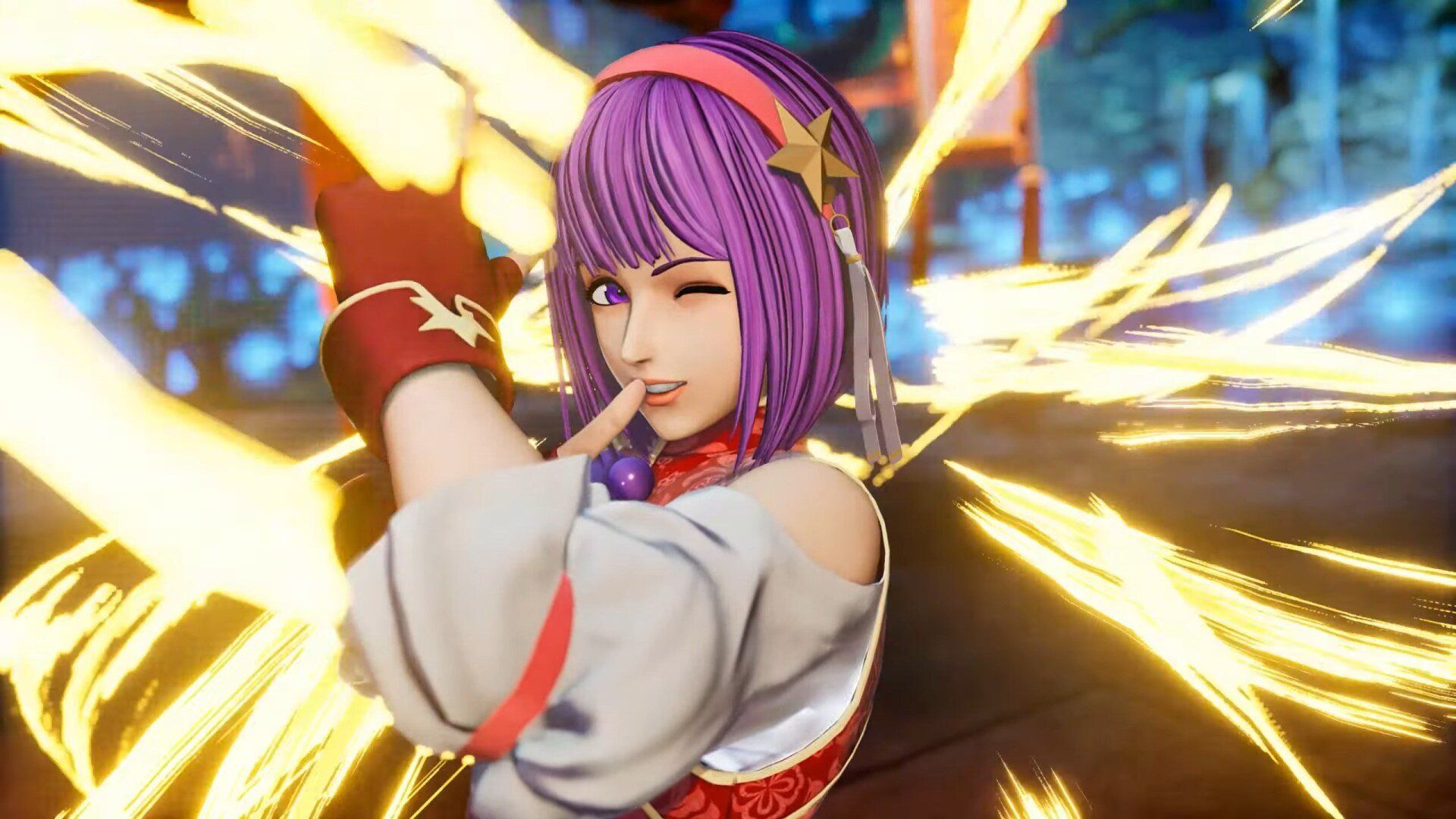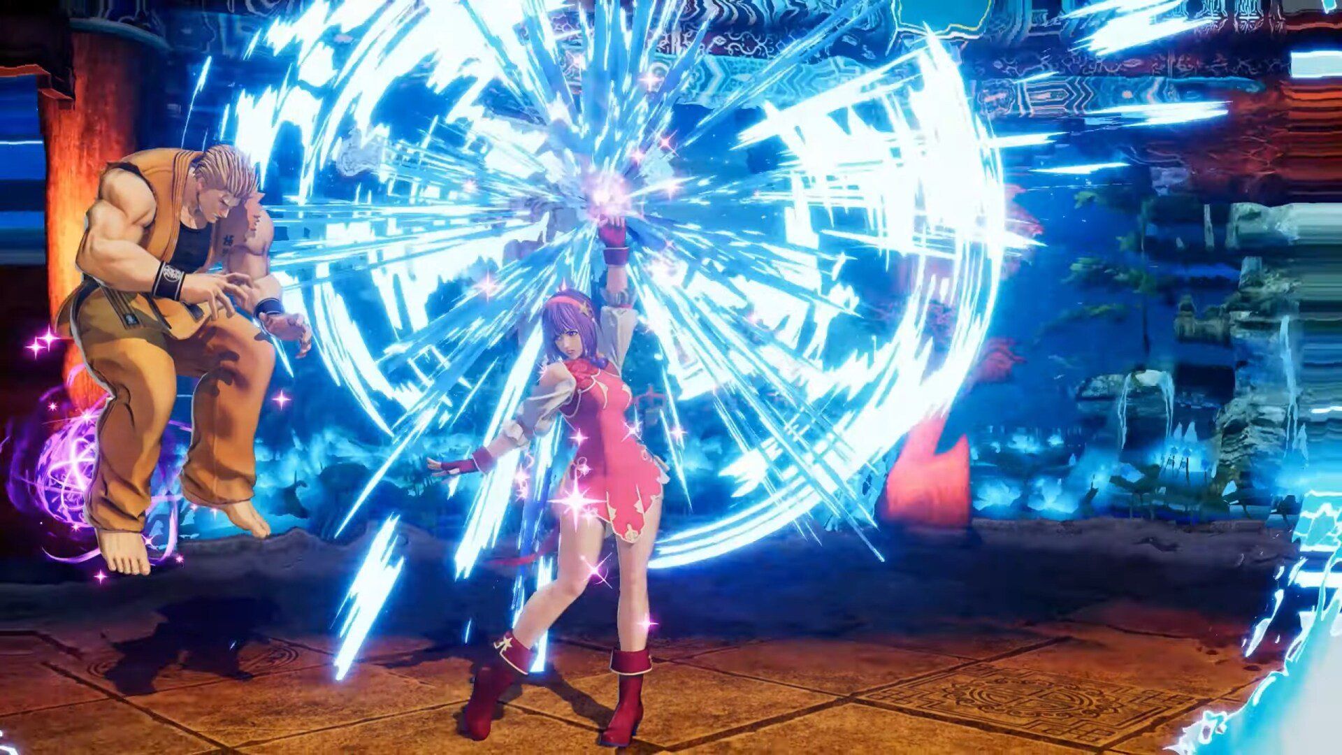 Introdução do Team Super Heroine formado por Athena Asamiya, Mai Shiranui e Yuri Sakazaki em The King of Fighters XV.
