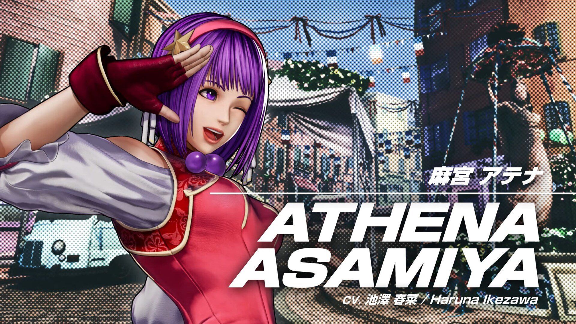Athena é uma "pop idol" do colegial que luta contra o mal para trazer a paz mundial. Seu estilo de luta é composto dos poderes psíquicos com os quais ela nasceu e do Kung Fu Chinês. Ela é uma trabalhadora árdua, educada e séria. No entanto, esse KOF que ela inesperadamente se juntou a Mai e Yuri ...?