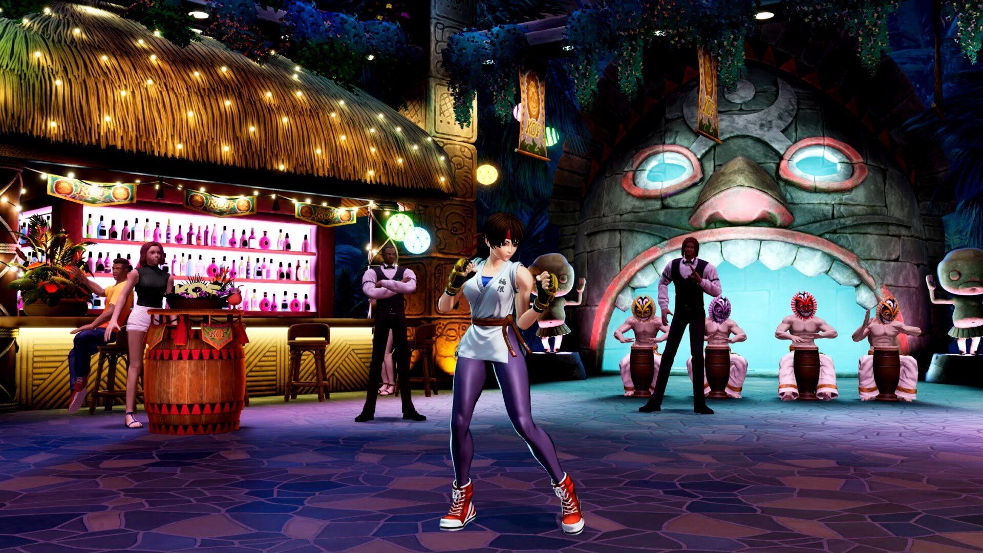Também tivemos a apresentação de um novo cenário, o Pao Pao Cafe, que é certamente o bar mais famoso e conhecido de todo o universo da SNK.